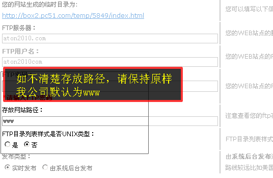 如果是独立购买的开云建站盒子,还需要输入ftp服务器中的网站目录等信息,如不清楚请保持原样,或者咨询主机提供商业。